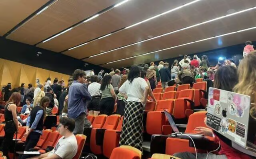 The scene took place at a student assembly hosted by the far-left group Students Against War, which sought to reject the university’s adoption of the International Holocaust Remembrance Alliance (IHRA) working definition of antisemitism.