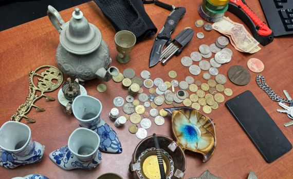 Police discovered that the suspect had a significant amount of stolen property, including cash, silver and gold antiques, smartphones and other smart devices and bicycles and knives.